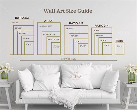Source: www.pinterest.com When it comes to wall art, size matters. If your couch is 6 feet wide, multiply it by 0.66 and 0.75. You can frame it without a mat or get a 24″ x 36″ frame if you want to have a mat. Large wall art ranges between 33 and 40 inches (about 2½ to 4 feet) in height and width..